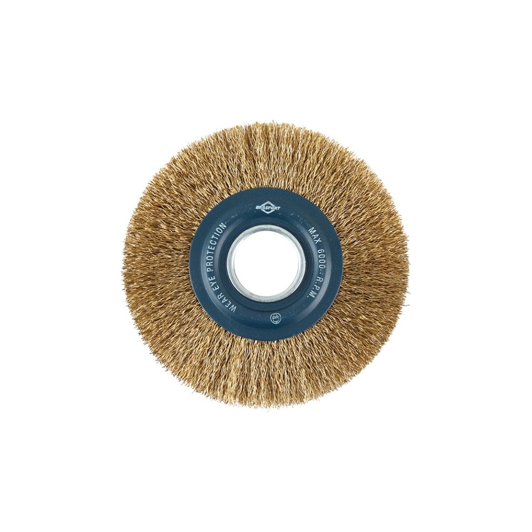BRASFORT ESCOVA DE AÇO CIRCULAR 6"X1/2 DIAMETRO FURO) (7245)FIO ONDULADO 0,38MM(AÇO LATONADO)